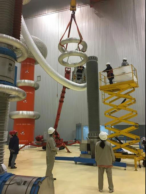 沖擊電壓攻關團隊開展跨頻域傳遞分壓器的特性試驗。
